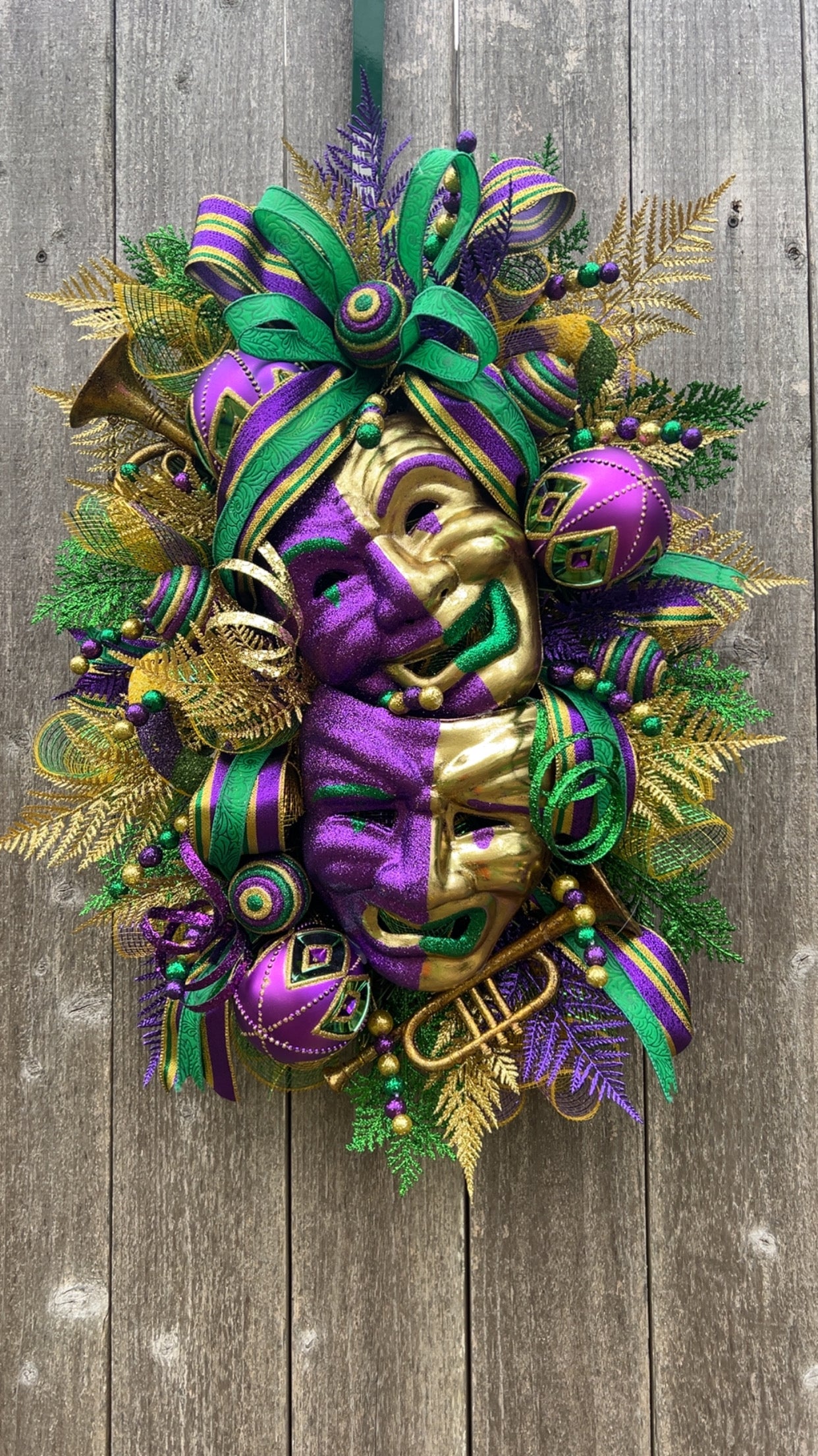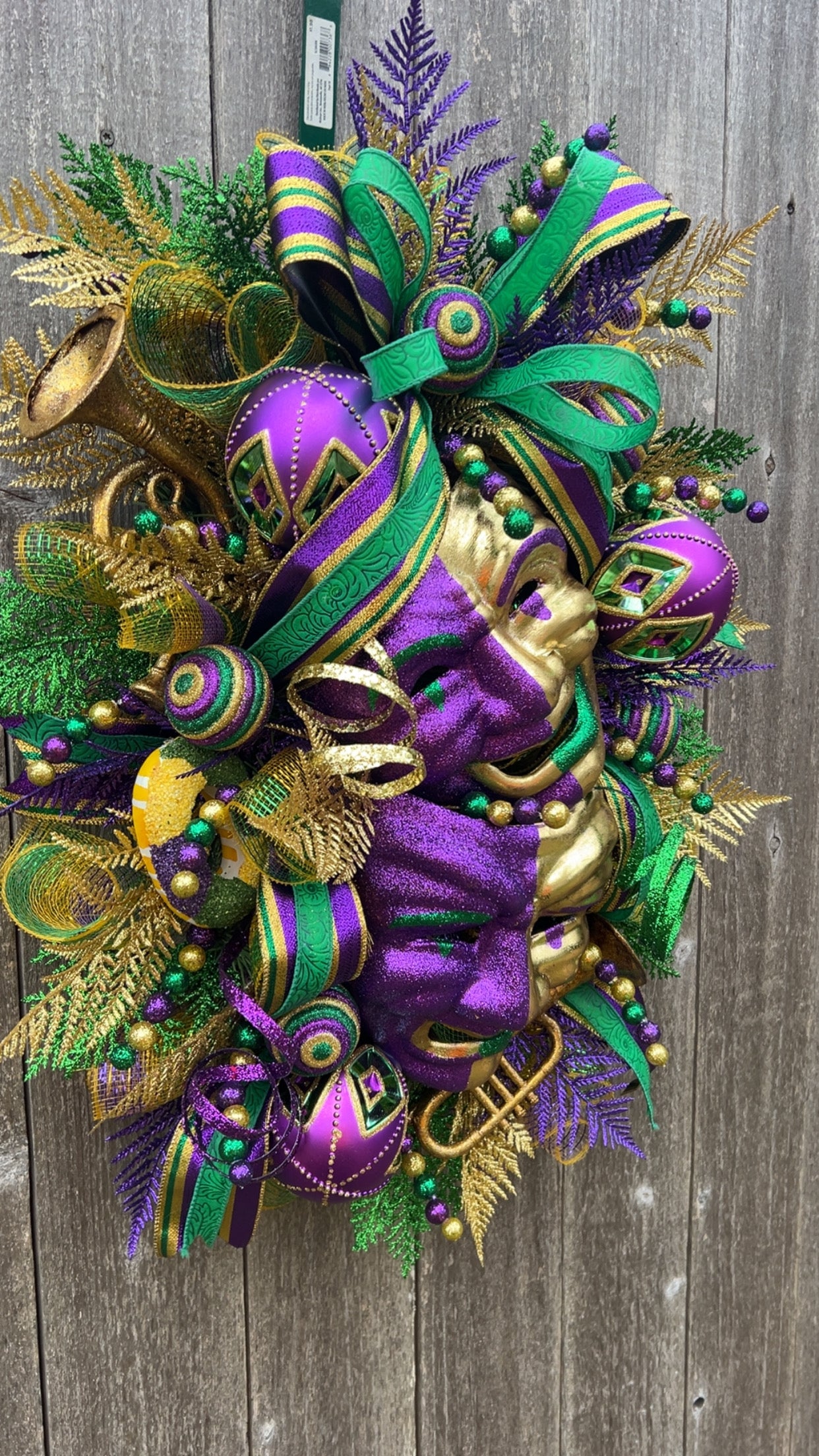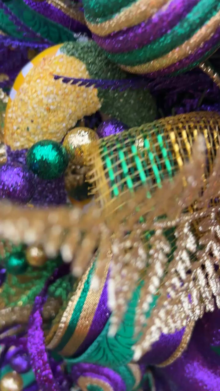 Packed with vibrant colors, sparkle, ribbon, and that classic Mardi Gras flair—perfect for your home or party décor.